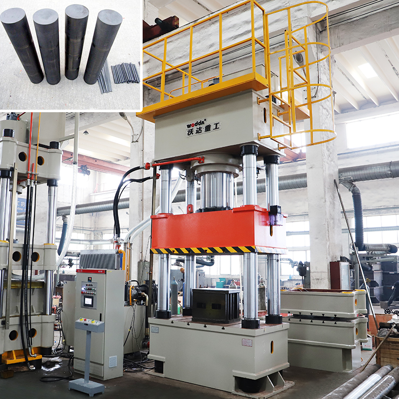 630噸石墨碳棒成型液壓機主要用石墨粉碳棒壓制成型👅,廣泛應用于石墨電極、石墨接頭、石墨柱等柱形石墨制品的生産。相較于石墨碳棒擠出成型工藝,本款630噸石墨碳棒成型液壓☁️機主要采用模壓成型工藝,成型的碳棒密度更高,耐熱性、導✏️電性和穩定性能更突出。