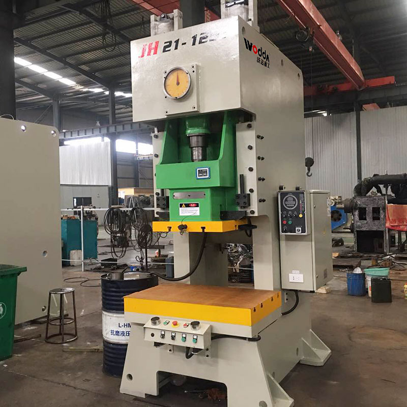 JH21-125T氣動沖床,也叫氣動壓力機,開式單點固定台壓力機,是現代工業生産⭐中常用的機器設備。如下圖所示: